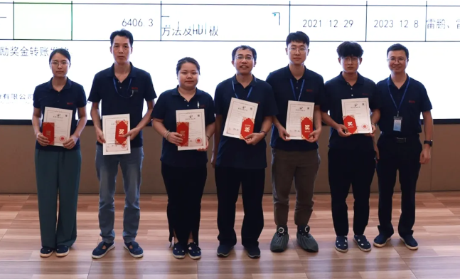随后,会议进入了知识产权激励颁奖环节。各部门管理干部为获奖人员颁发了奖励及证书,包括期刊论文10篇、计算机软件著作版权2项、授权发明专利7项、授权实用新型专利12项以及受理发明专利26项。这一荣誉时刻,不仅是对获奖者辛勤付出的最高赞誉,更是对创新成果的认可。