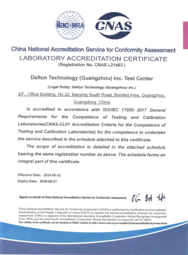 九游在线官方官网检测中心(以下简称“广合科技检测中心”)顺利通过中国合格评定国家认可委员会(“China National Accreditation Service for Conformity Assessment”, CNAS)的认可,成功获得CNAS认可标识和认可证书(注册号:CNAS L21463),标志着我司在检测技术能力和管理水平上迈上了新的台阶。